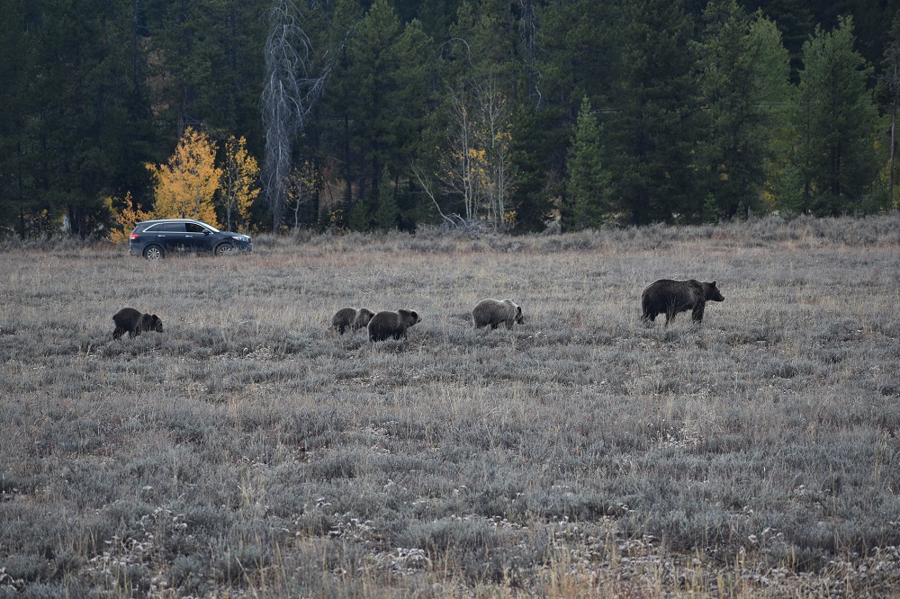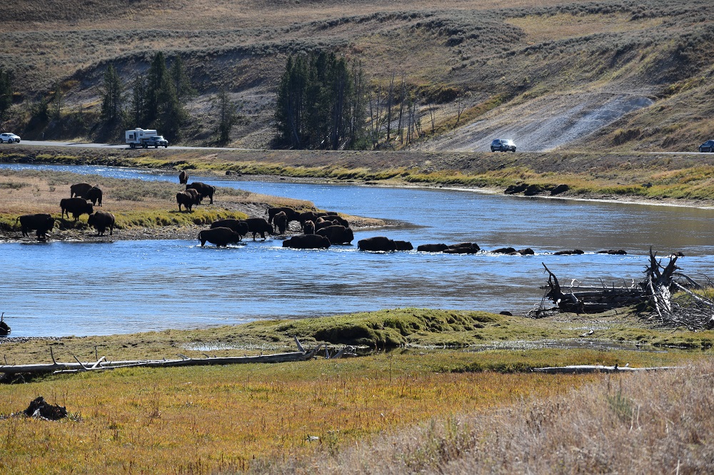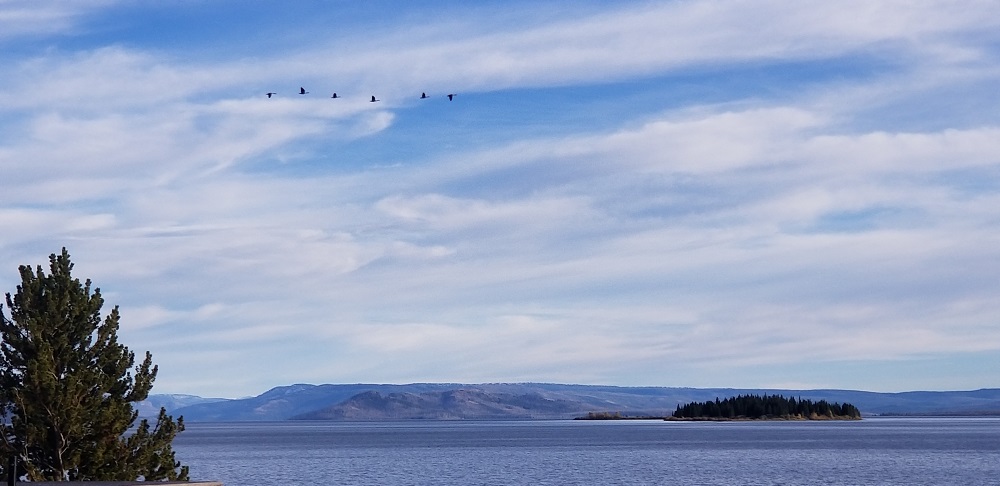 We started the day by driving out of Jackson through Grand Teton NP at sunrise and continued up to the northern side of Yellowstone Lake in Yellowstone National Park through the south entrance. We experienced the most wonderful unintentional but highly appreciated self-guided wildlife safari either of us had ever experienced! Enjoy the several slide shows below of our multiple, accidental, incredibly timed, sometimes very close, encounters with elk, buffalo, bear, swans, and geese as we drove through the diverse landscape of the world’s first ever national park in majestic Wyoming!