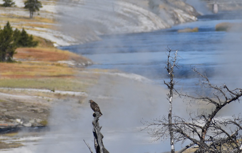 If you looked at a detailed map of Yellowstone, today we drove from Lake Village, where we are staying, south to West Thumb, west to Old Faithful, on to Madison, up around to Canyon Village and back south through our favorite animal sighting stretch along the Yellowstone River back to Lake Village.
