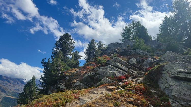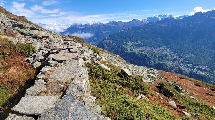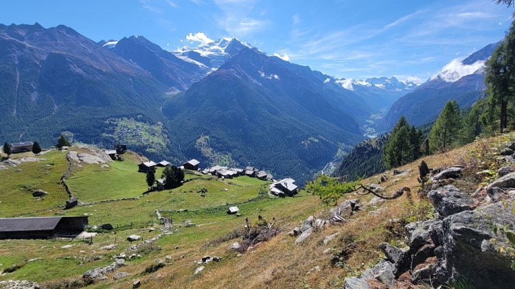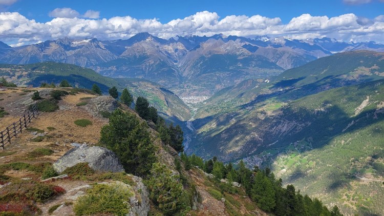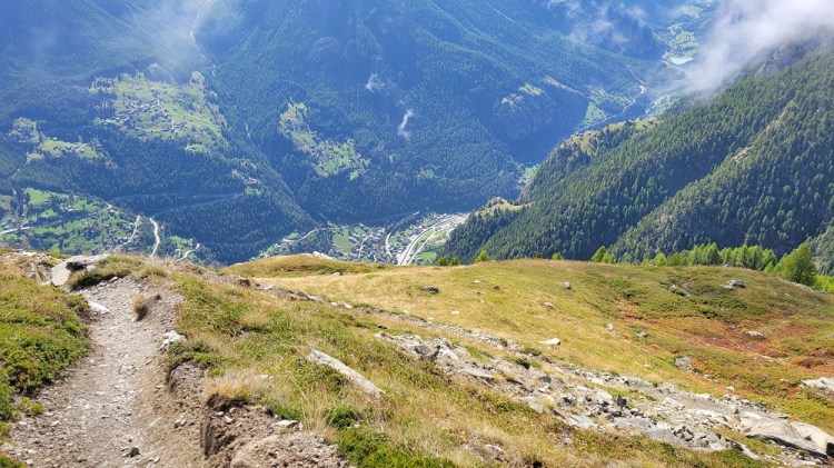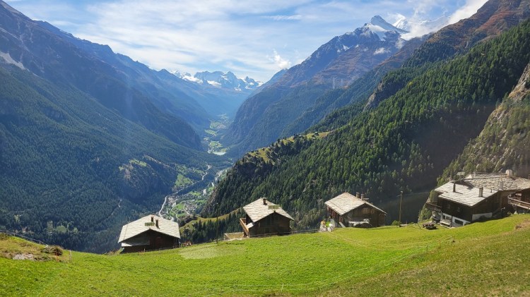 After a nice breakfast and saying good bye to some new friends, I had dinner with them 2 nights ago, it was off to the bus stop. To get to the next town you need to take a bus down the side valley, a train across the big valley, then another bus up the next valley. Today was slightly different, as the train comes up the side valley I am in now. So I took a bus down the hill to a town, another bus down to the train station in the big valley another train part way up the Zermatt valley, then another bus up the hill to Grachen. Yes – bus, bus, train, train, bus. The transportation system here is amazing. Every bus or train I have taken has been on time. The trains run every 20 minutes or so. The remote busses are not as regular, but are still basically every hour. When you buy a ticket it is good point A to point B, you do not need to be on a specific bus or train. I have enjoyed all the sights cruising around the past few days. I know I have said it before, but it is incredible where they build these roads and that the busses go up and down them.