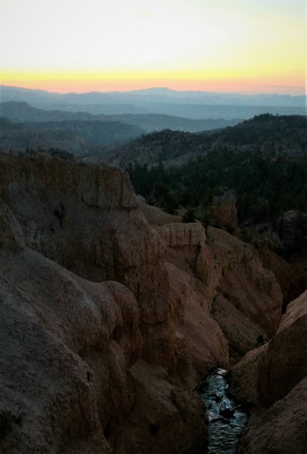 * We drove on a short, dirt road behind our hotel in Bryce Canyon City just before sunrise enjoying the pink and orange sky (see pic) before heading out to Zion.
