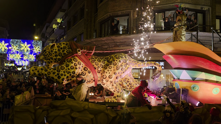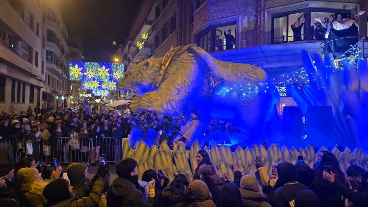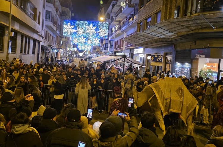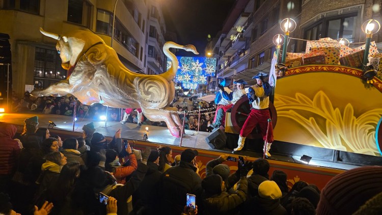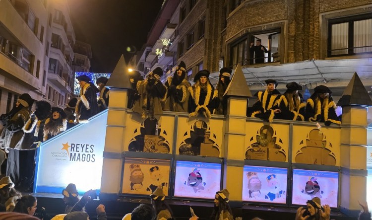 Arriving in Pamplona was fun. Tomorrow is Three Kings Day, but most of the festivities are the evening before. Groups travel around the city starting at 3PM. This is the Spanish kids Christmas eve. They open their presents on Three Kings Day. As I approached the main bridge over the Rio Arga into town there were probably 50 people waiting. I continued toward the main gate through the wall and a group of young people were headed toward the bridge, See photos. This same group were on one of the floats in the parade. At the gate there were well over 100 people gathered waiting for the next group to arrive. I walked right through the crowd of people, it was like they were my personal greeting committee. (At the very beginning of Pamplona (2 miles before the main bridge) I had stopped for lunch and to shop.)