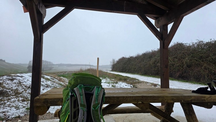 The sun rises here at 8:47, so with the cold I plan to start about 9. There are no real stops along the way that are open, so you tend to just keep moving. Zubiri has two churches, so all through the night the bells ring on the hour, about 5 minutes apart. I was in an albergue, which are noisier, plus the bells ringing meant I woke up a few times during the night. People were up and leaving at 5:30. No idea why. There were about 8 people staying here. When I left there were 2 pair of shoes still in the shoe room. The bathroom is not heated at this place as well. Makes for a refreshing shower.
