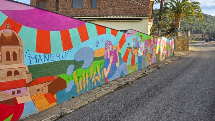 Soon I came to the village of Cirauqui. Outside a small store were 3 pilgrims. A guy from Argentina, who lived in the US for 30 years and now lives in Spain. I met him after day 1. A woman from Holland and a gentleman from Germany. All are 50 plus. They were raving about the chocolate croissants, so obviously I had to try one. They were literally hot out of the oven, the best croissant I have had on a Camino. I actually went back in and had a second. Big pack arrived just as I was leaving. We all walked loosely together the rest of the day. These people are all interesting for me. Travelers, etc. Argentina walked the Appalachian Trail 3 years ago. Germany started walking from Frankfurt. Last week Holland was riding a bike in Vietnam with her husband, now she is walking her 8th Camino.