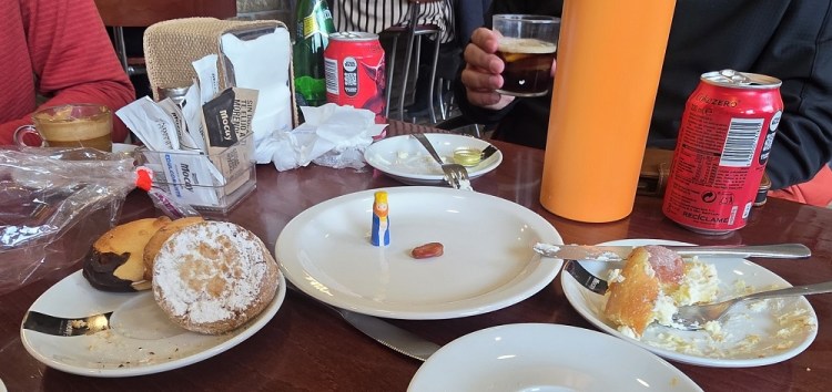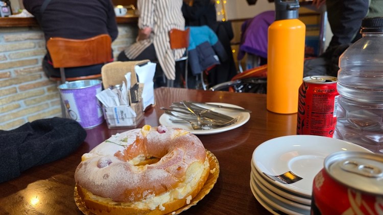 When we arrived in the town of Villatureta we all stopped for a break. The café had a Roscon de Reyes. A round shaped sweet bread enjoyed on Three Kings Day. You have to buy the entire bread, so I had never tried it. Since we had a group, I bought one. In the sweet cream filled middle is hidden a king and a bean. If you get the king, you get good luck for the next year. If you get the bean, you are supposed to get another Roscon de Reyes next year. Argentina grew up with this tradition. While I was cutting the pieces I saw the king, so I gave him that piece. Ironically, I ended up with the bean, so I guess I will have to come back next year.